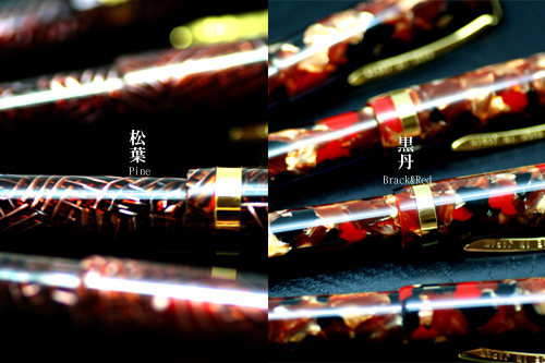 | 2012/03~ セルロイドメッシュの万年筆について、セーラー万年筆にて、弊社オリジナルデザインの金ペン(14K)を製造し、 加工組立検品を頂いたものを販売することになりました。 |